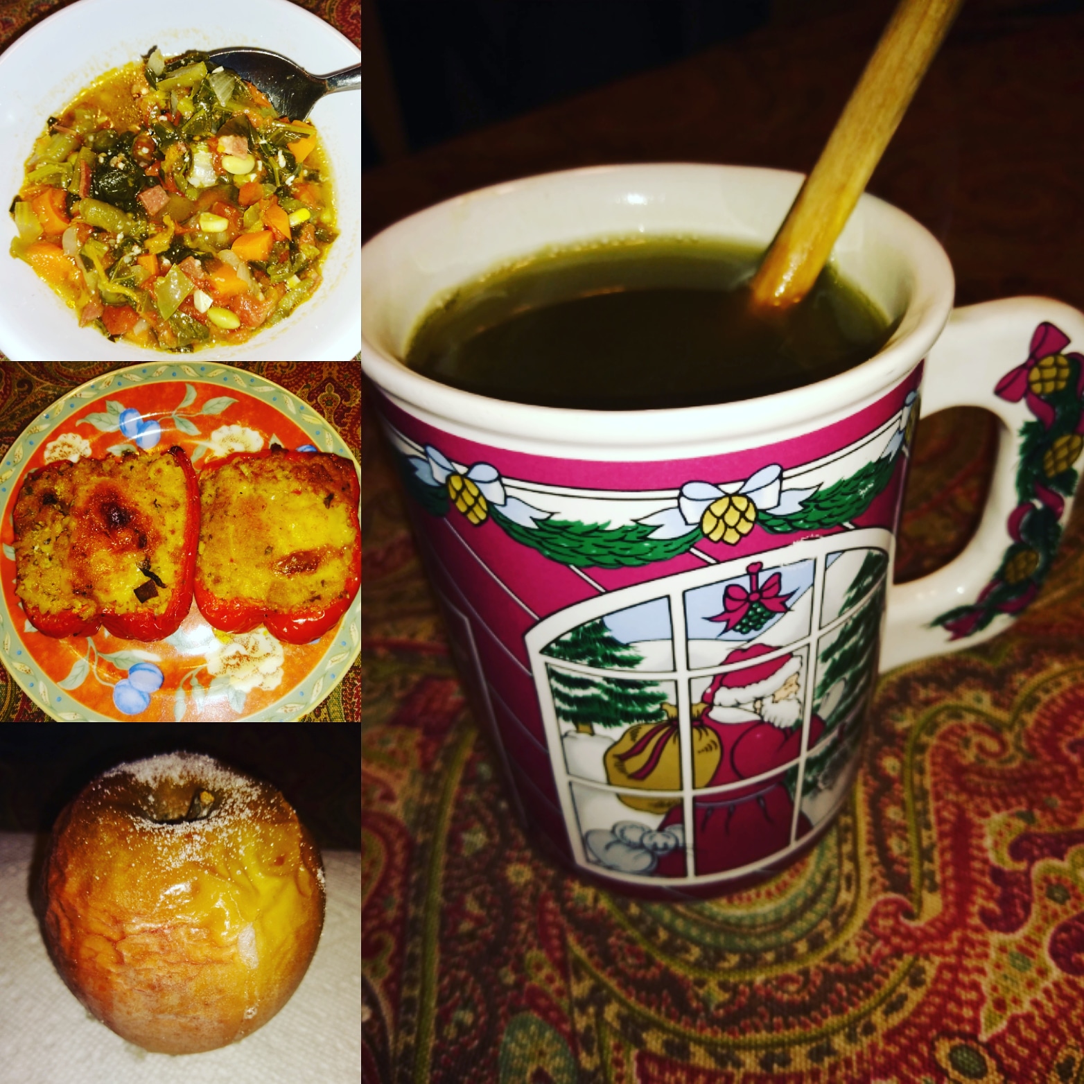 #Season! #Hot #tea – ceremonial grade #matcha with #lemon and #ginger, #minestrone #soup, #thankyou #grandparents, #stuffedpeppers, and a #sugar coated #baked #apple… Left me #stuffed for the #night! Great and #healthy #dinner. Thanks for the #delicious and #tasty #food. ❤️