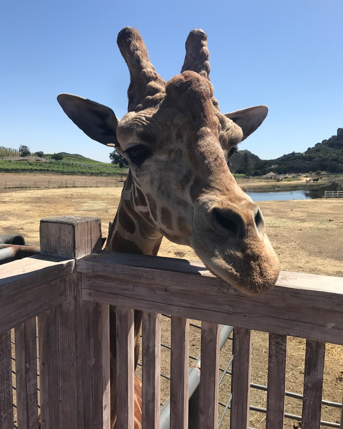Intel: The giraffe is Stanley the Giraffe as per Emily. He was in one of the #Hangover movies, a #toysrus commercial, and now lives at #Malibu wine safari in California.